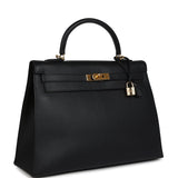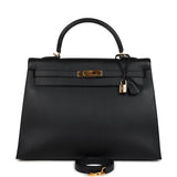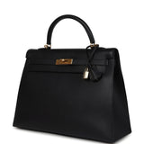 Vintage Hermes Kelly Sellier 35 Black Ardennes Gold Hardware