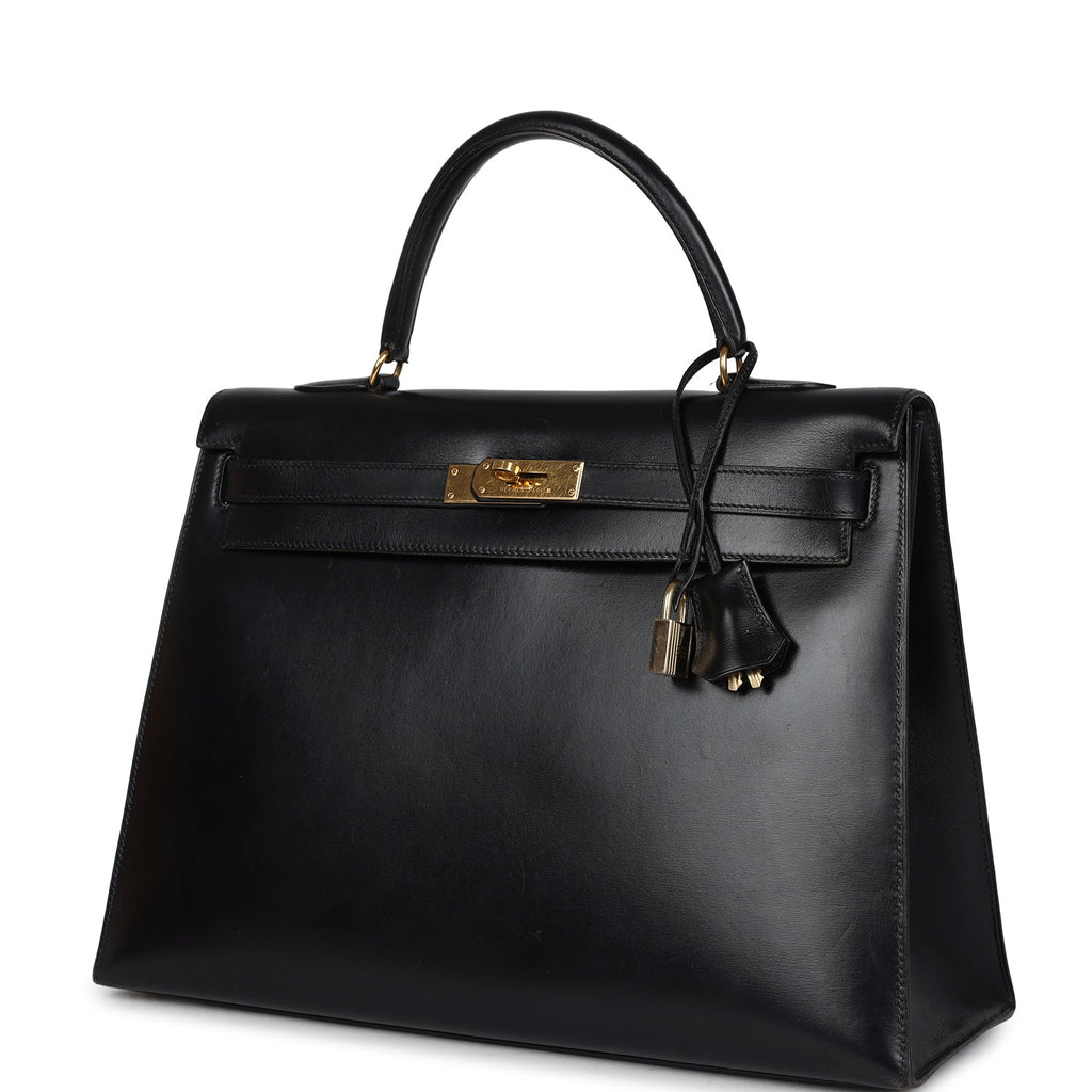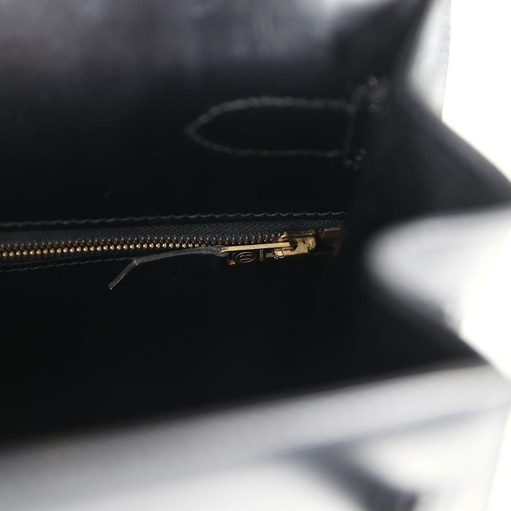 Vintage Hermes Kelly Sellier 35 Black Box Gold Hardware