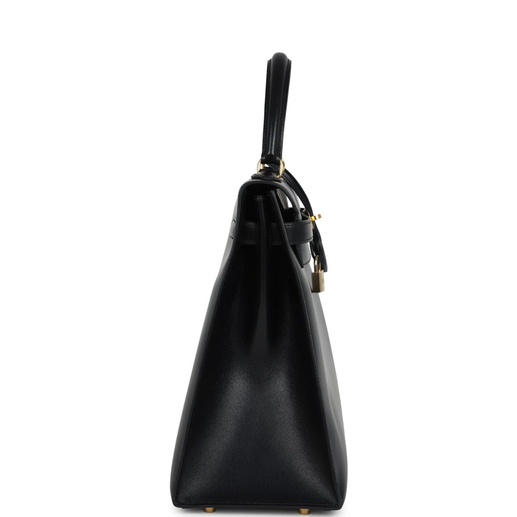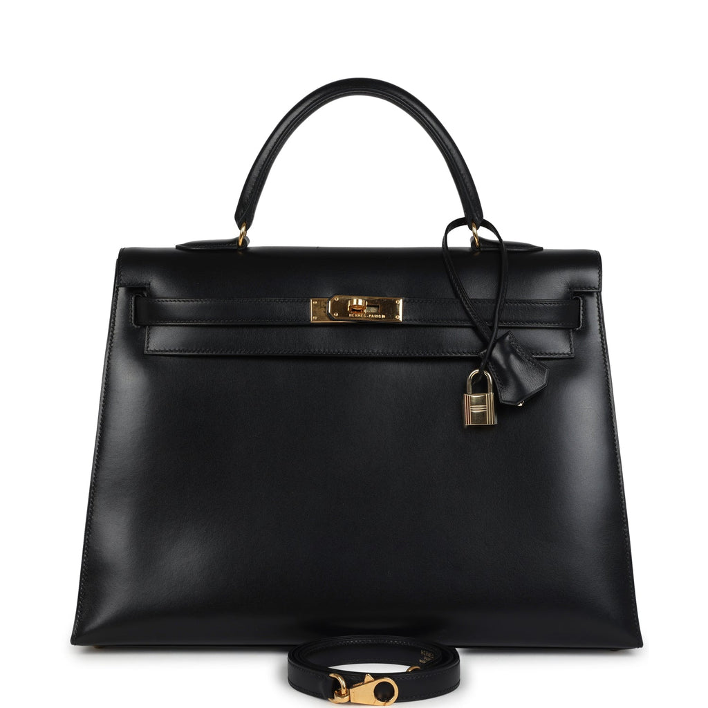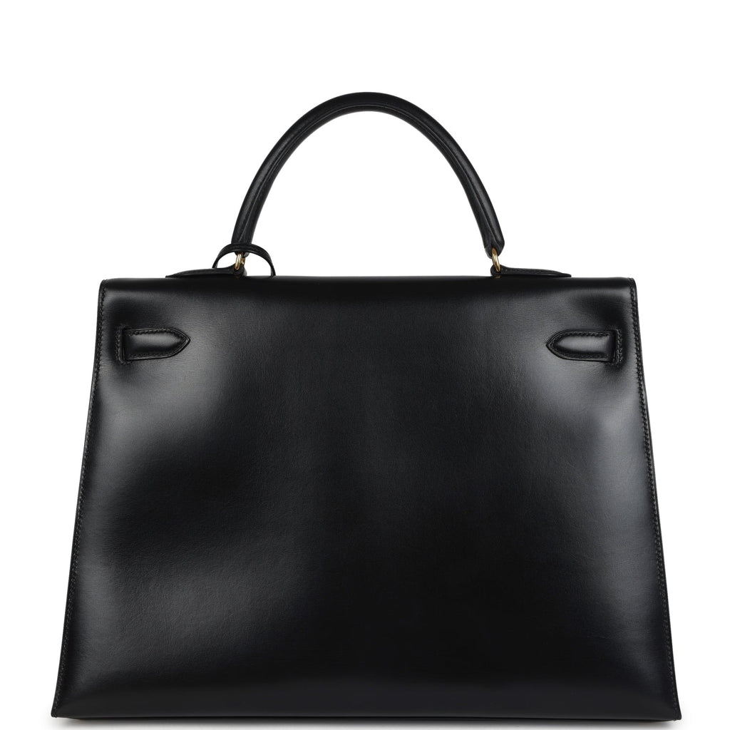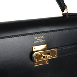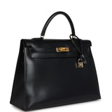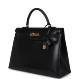 Vintage Hermes Kelly Sellier 35 Black Box Gold Hardware