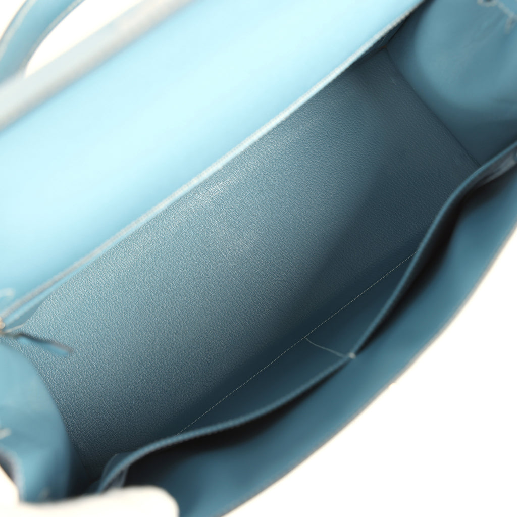 Vintage Hermes Kelly Sellier 35 Blue Jean Epsom Palladium Hardware