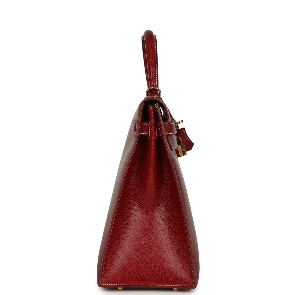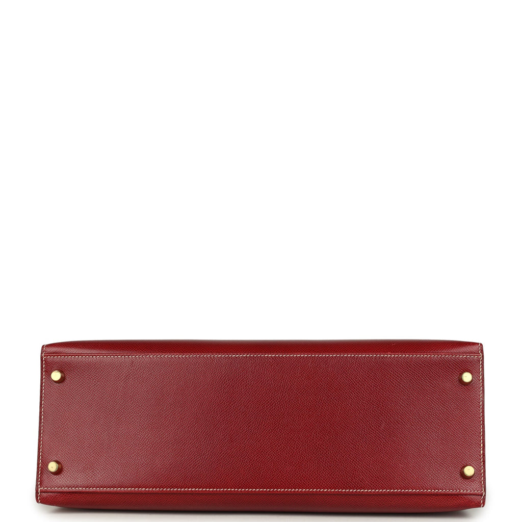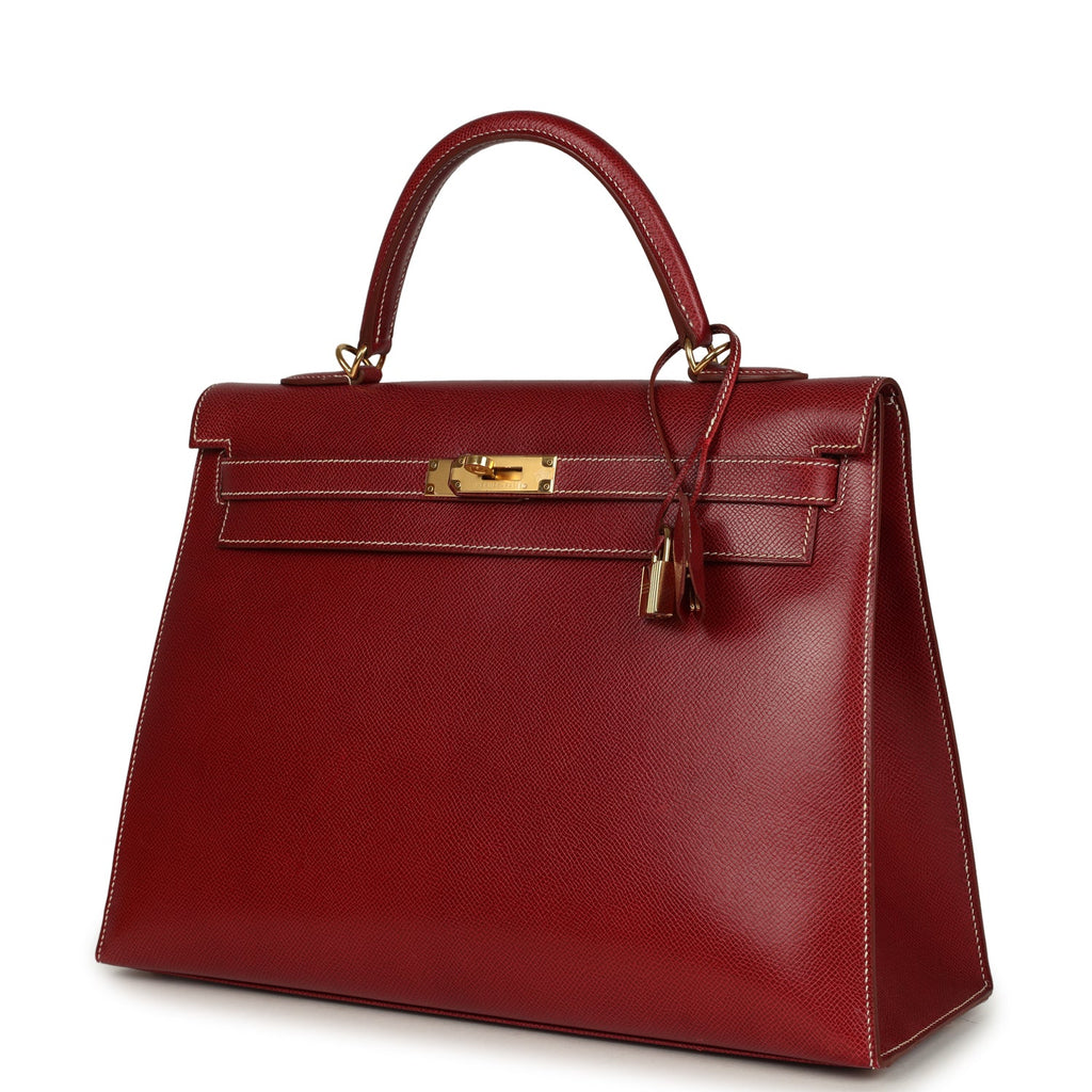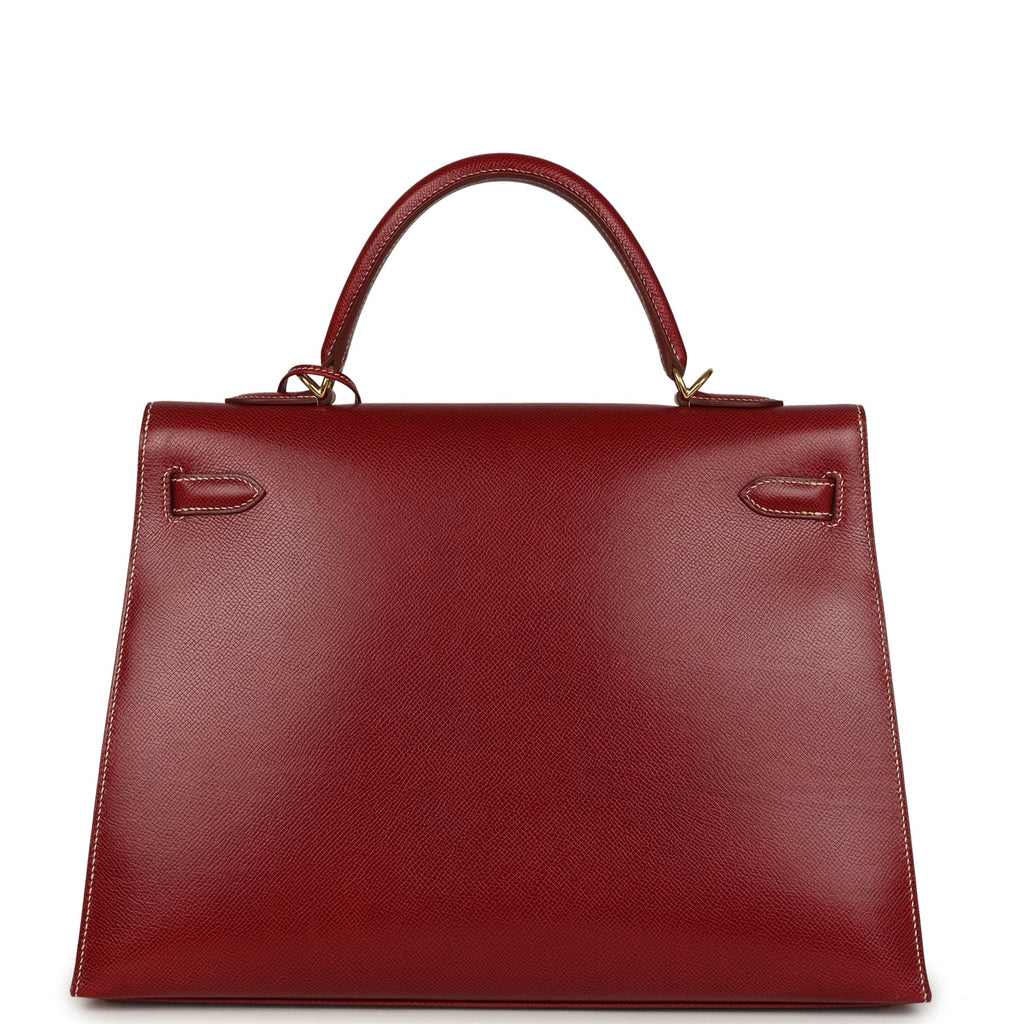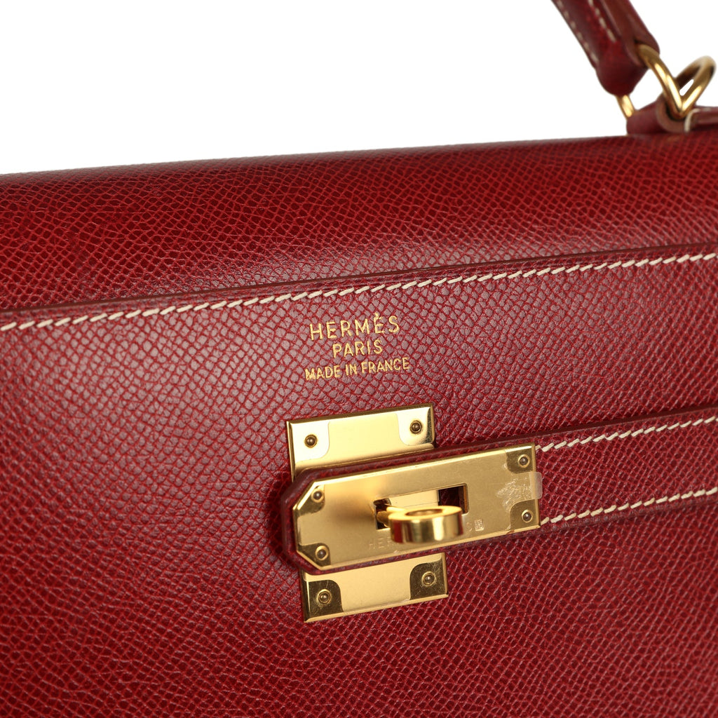 Vintage Hermes Kelly Sellier 35 Rouge H Veau Grain Lisse Gold Hardware